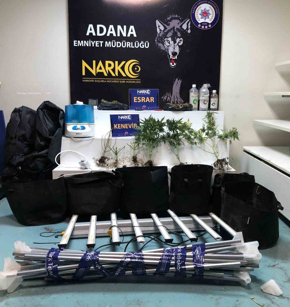 Alınan bilgiye göre, İl Emniyet Müdürlüğü Narkotik Suçlarla Mücadele Şubesi ekipleri, şüpheli Y.D.’nin (34) evinde iklimlendirme sistemi ile uyuşturucu yetiştirdiğini tespit etti. Bunun üzerine şüphelinin Sarıçam ilçesine bağlı Gültepe Mahallesi’ndeki adresine baskın yapıldı. Baskında yakalanan Y.D. gözaltına alındı. Evde yapılan aramalarda ise 123,42 gram esrar, kök Hint keneviri ile iklimlendirme sistemine ait malzemeler ele geçirildi. Şüpheli ifadesinde, "Evi ben kiraladım ama başkası kullanıyor. Maddeler bana ait değil, kullanan kişi de 2 gün önce cezaevine girdi" dediği öğrenildi.