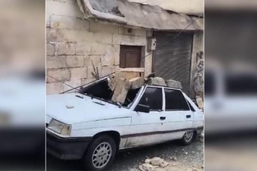 33 KS 636 plakalı otomobil, park halindeyken üzerine duvar devrildi.