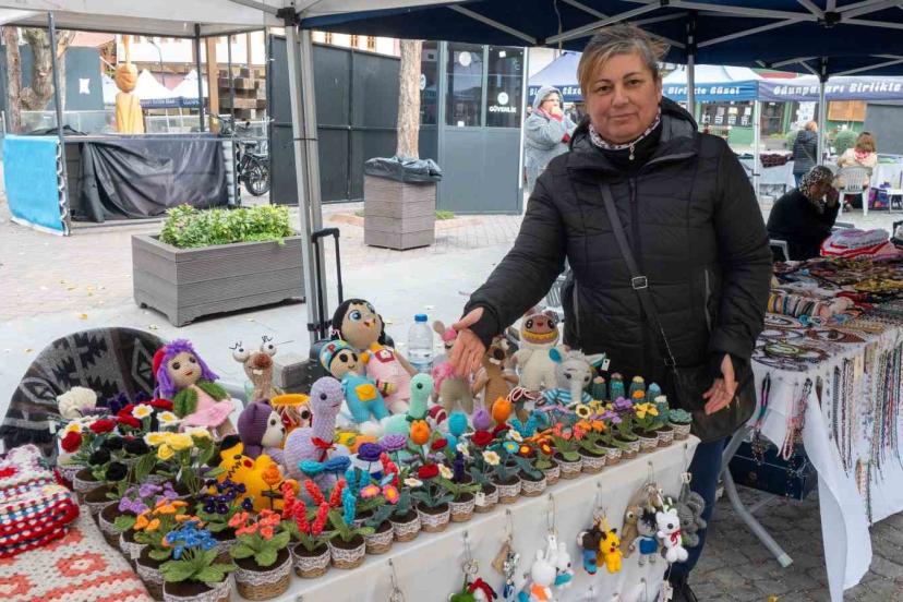 Eskişehir’de hava sıcaklıklarının hissedilir derecede düşmesine rağmen el işi üreticileri, tezgahlarının başında durmaya devam ediyor. Yıllardır el işi sanatıyla uğraşan ev hanımı Şükran Karol da soğuk havaya aldırış etmeden, binbir emekle hazırladığı ürünlerini sergilemeyi sürdürüyor. Özellikle renkli örgü çiçekler ve oyuncaklarla dikkat çeken tezgah, vatandaşların görselliğe olan ilgisi sayesinde canlılığını korurken, Karol üretim sürecinde gece gündüz demeden çalıştığını belirtiyor.