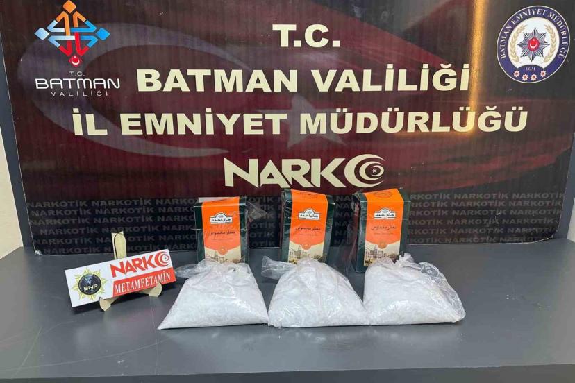 İl Emniyet Müdürlüğü Narkotik Suçlarla Mücadele Şube Müdürlüğü ekiplerince yürütülen çalışmalar kapsamında Şehirlerarası Otobüs Terminalinde durdurulan bir taksinin içinde arama yapıldı. Aramada, eşyalar arasında 3 kilo 50 gram metamfetamin maddesi ele geçirildi.