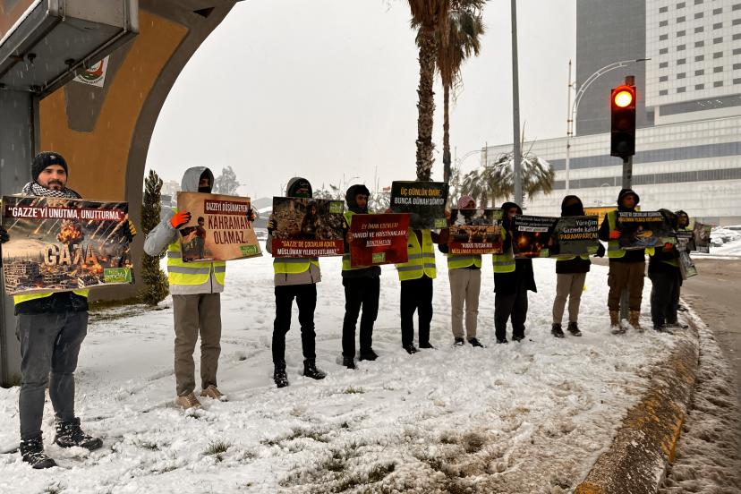HÜDA PAR Şanlıurfa İl Gençlik Kolları tarafından yapılan açıklamada, hava şartlarının zorluğuna rağmen Gazze’de yaşananların unutulmaması gerektiği ifade edilerek, “Kar, soğuk ve zor şartlar bizi durduramaz. Gazze’de insanlar aylardır bombalar altında, açlık ve yoklukla mücadele ediyor. Bu zulmü unutmamak ve unutturmamak insanlık görevimizdir” denildi.