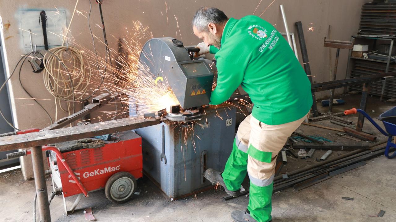 Öte yandan, belediye bünyesindeki Metal-İş, Boyama ve Ahşap Atölyelerinde görev yapan ekipler de park ve yeşil alanlarda kullanılan donatı elemanlarını kendi imkanlarıyla üretiyor. Kaynak, boyama ve montaj işlemleri belediye personeli tarafından tamamlanarak kısa sürede vatandaşların hizmetine sunuluyor. Bu çalışmayla hem zaman hem maliyet açısından önemli tasarruf elde ediliyor.