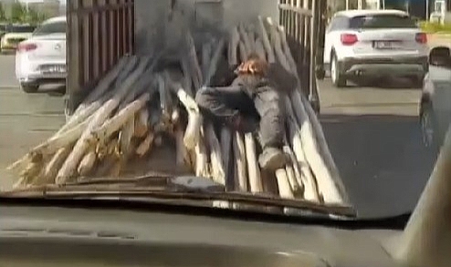 Gaziantep’te cep telefonu kamerasına yansıyan tehlikeli yolculuk pes dedirtti. İnşaat işçisi olduğu iddia edilen bir kişi, Şahinbey ilçesi Akkent Mahallesi’nde seyir halinde olan kamyonetin kasasındaki tahtaların üzerinde uyuyakaldı. Tehlikeli yolculuk sırasında hiçbir güvenlik önleminin alınmamış olması ise dikkat çekti.