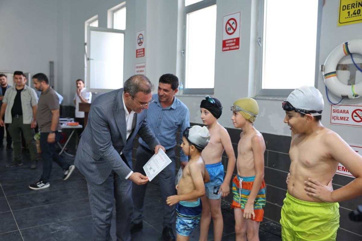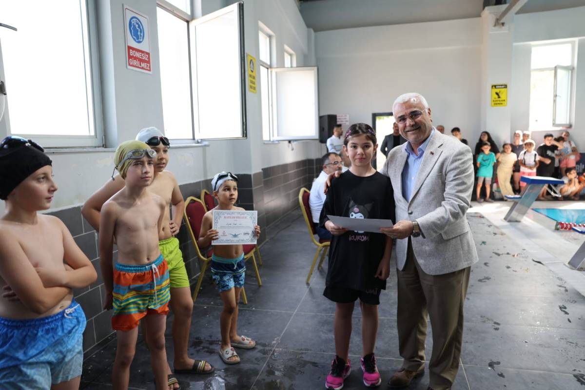Spor İşleri Müdürlüğü bünyesinde 7-14 yaş arası çocuklar için “Yüzme Bilmeyen Kalmasın” projesi kapsamında açılan kursları başarı ile tamamlayan 250 öğrenciye düzenlenen tören ile sertifikaları verildi.