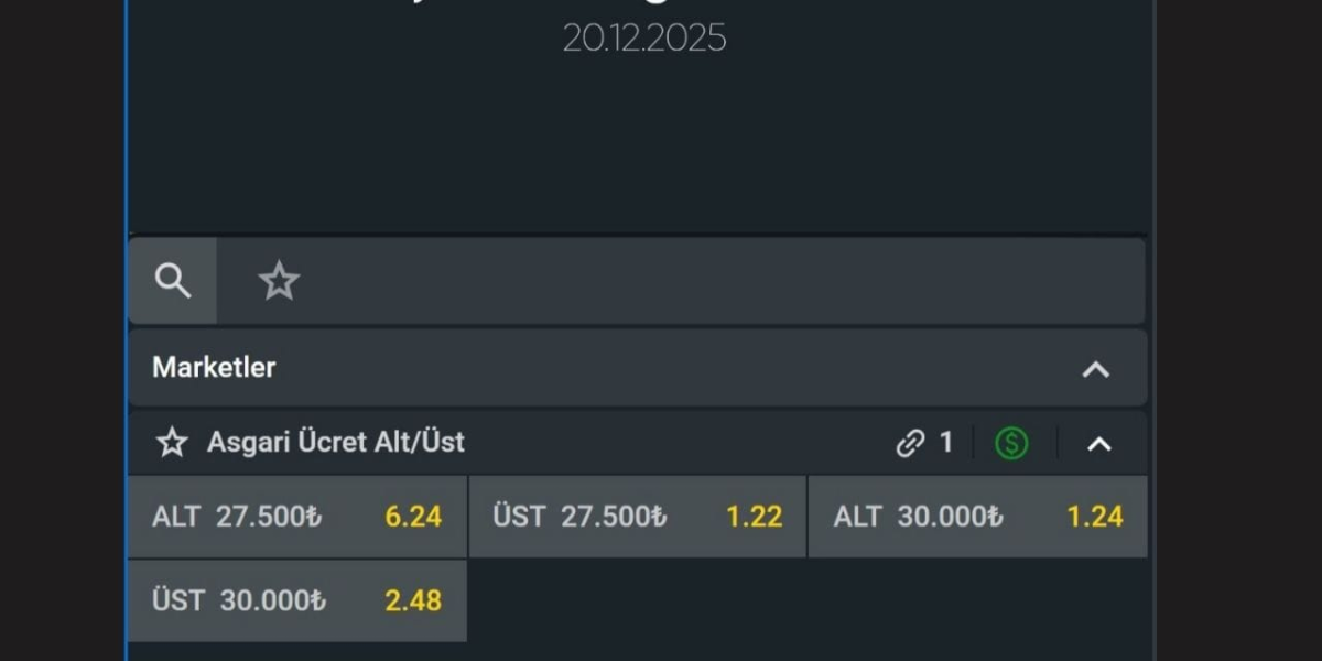 Halk TV'de yer alan habere göre, yasa dışı bir bahis sitesi 2026 asgari ücreti için "alt/üst" seçeneğiyle bahis başlattı.
